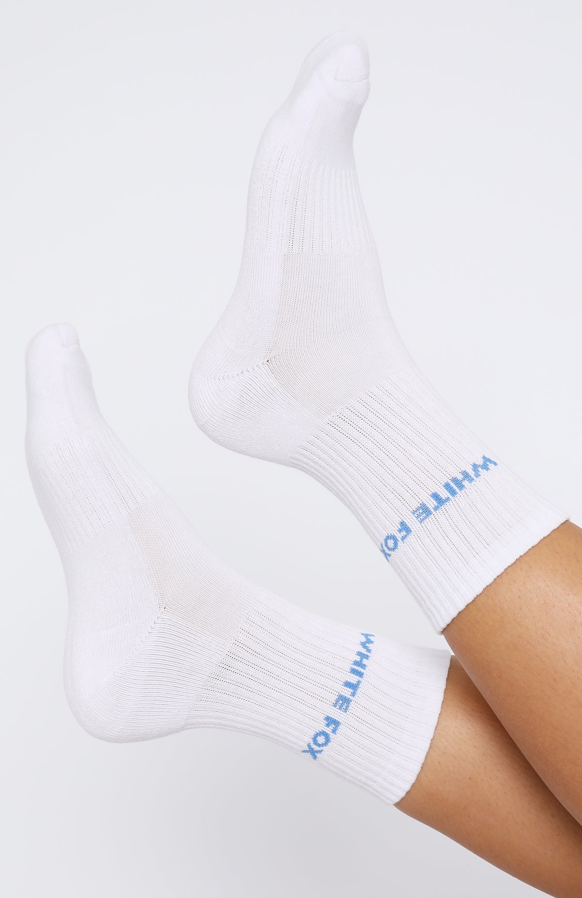 The All For It Socks in White/Blue are a cute addition to your next sweat session. These cushioned crew socks feature embroidered White Fox Logo and ribbed ankle cuffs and arch band. Style them with your favourite sneakers and tee for that comfy and cute every-day look!